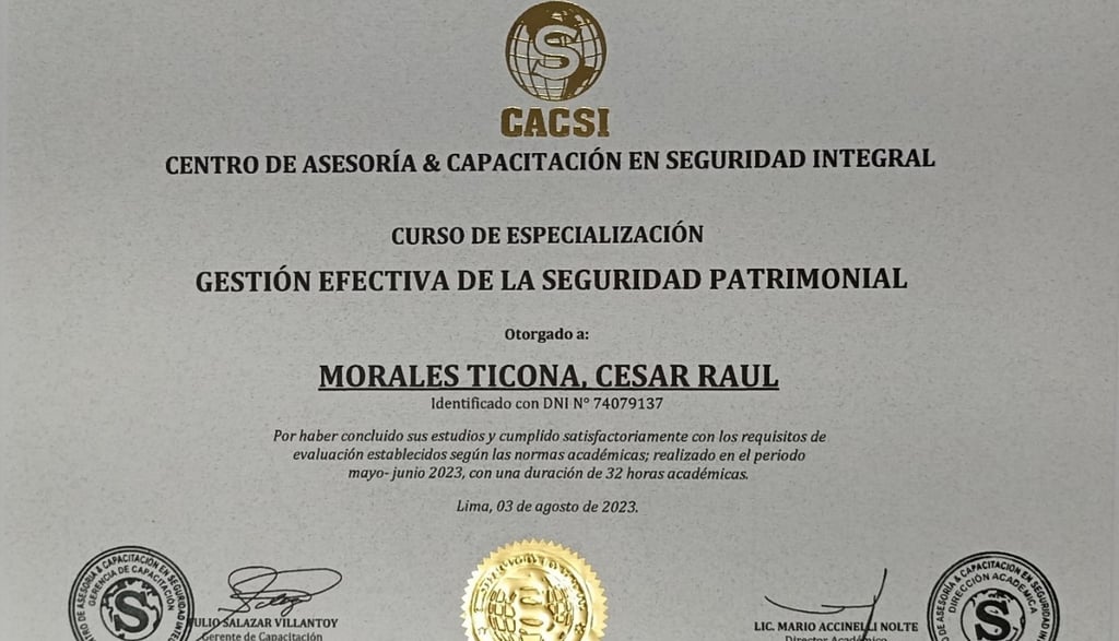 Este curso me permitió adquirir habilidades en la supervisión y gestión de servicios de seguridad, optimizando la calidad y eficiencia de los mismos, de acuerdo con las Normas ISO de calidad. A través de este programa, pude profundizar en la implementación de mejores prácticas para garantizar entornos más seguros y operativos.